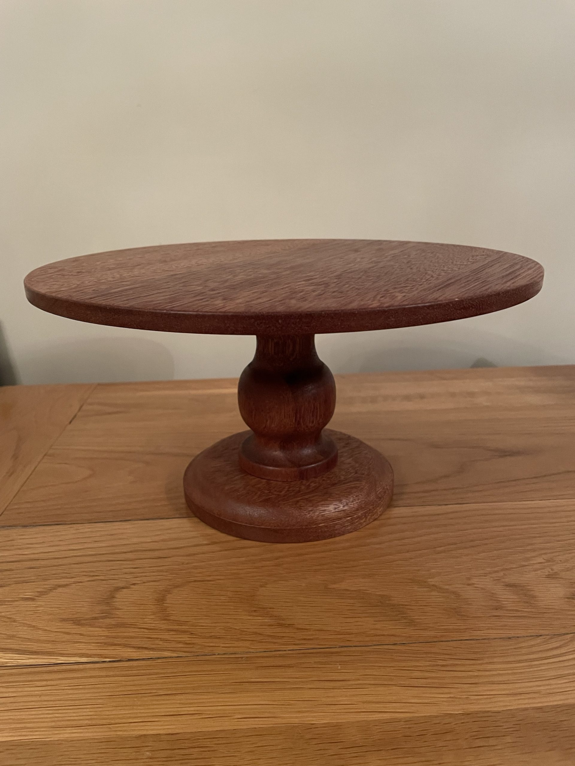 Our wooden cake stand looks great as a stand alone or sitting on top of another stand.