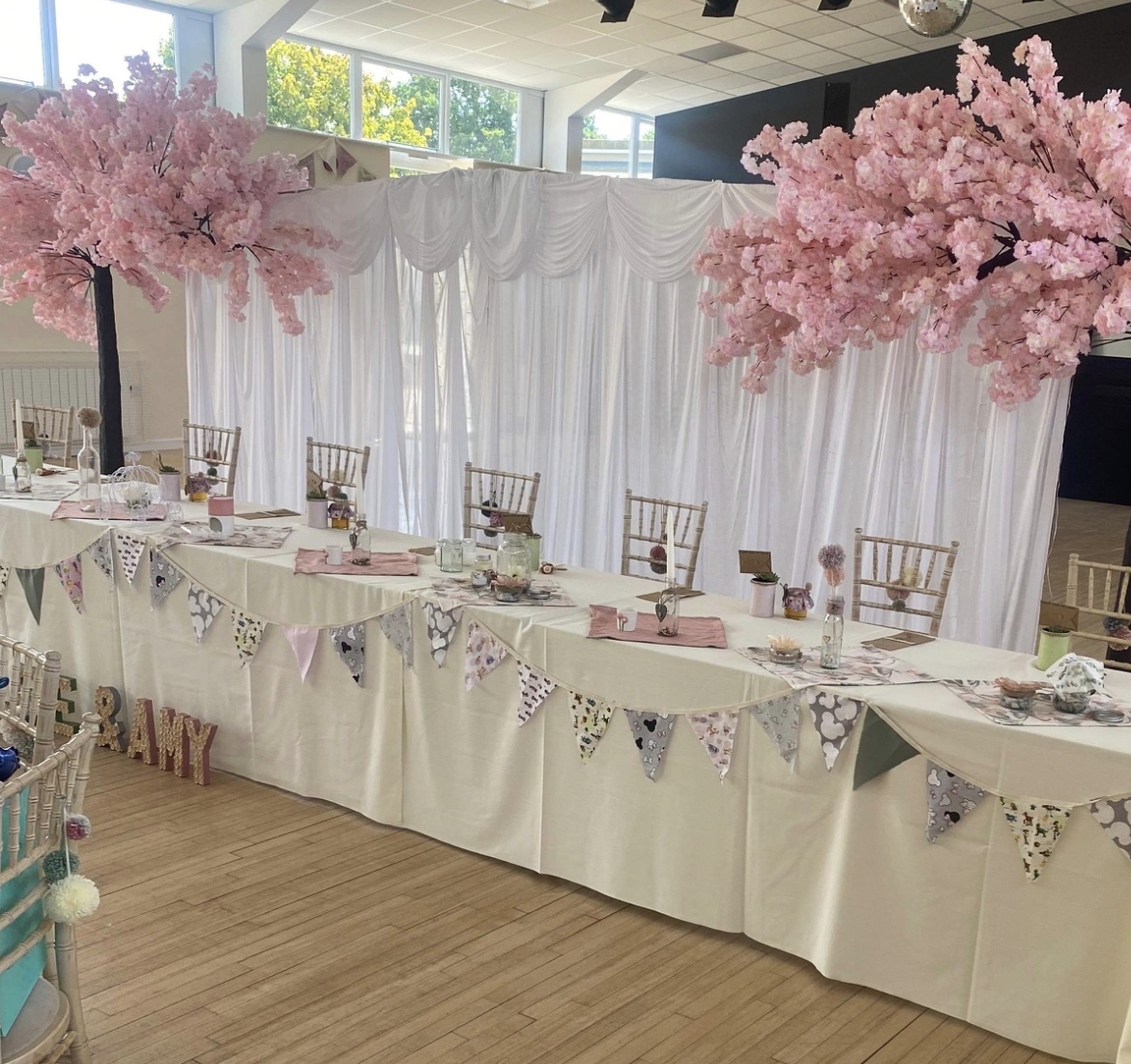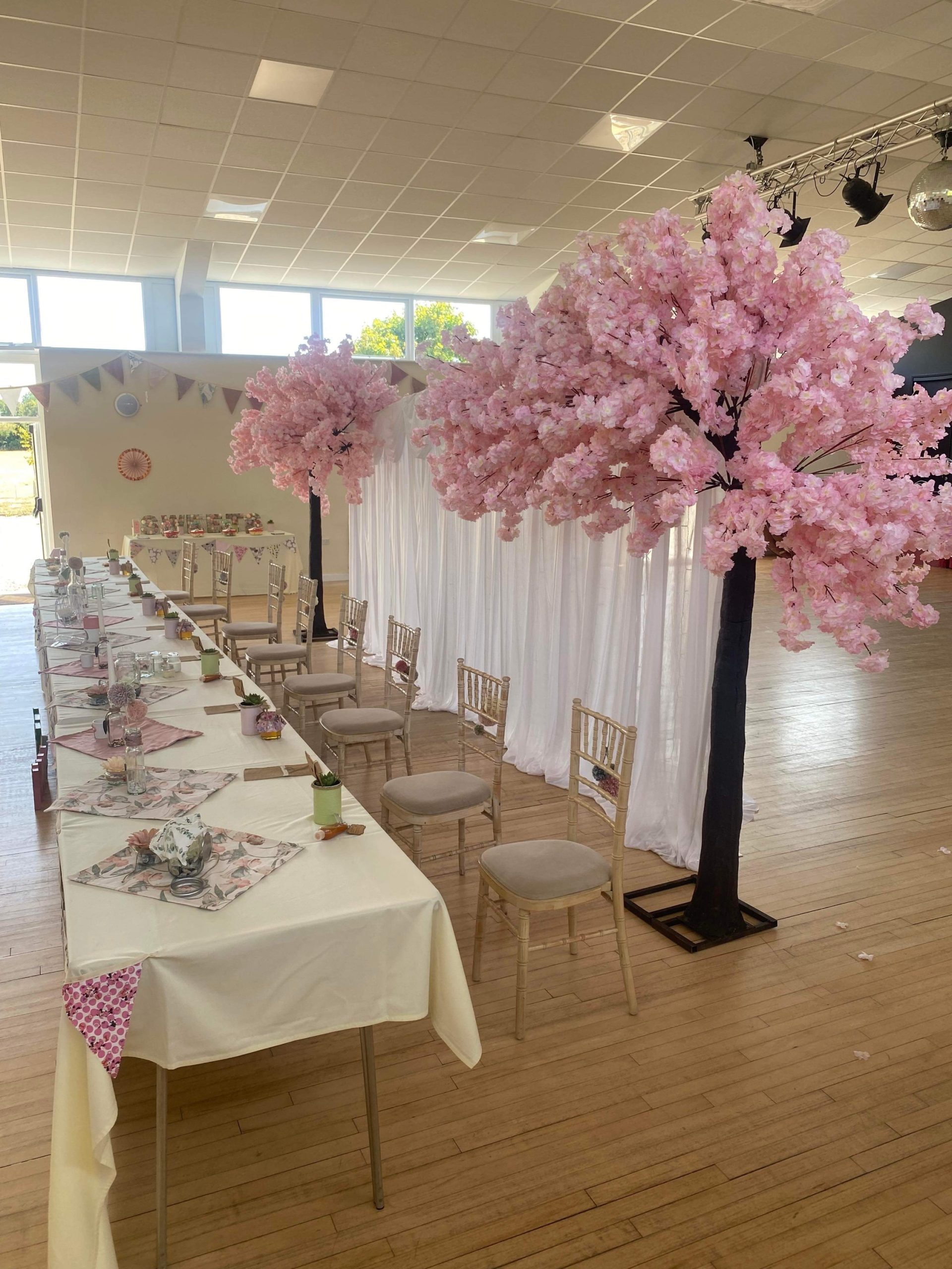 These truly stunning canopy blossom tree’s are 2.2 meters tall and 2.2meters wide, so it gives you a span of at least 4.4m so they are great for behind the top tables and entrances. They are hired as a pair. They can be moved during your day but there is an additional cost for this. Please ask.